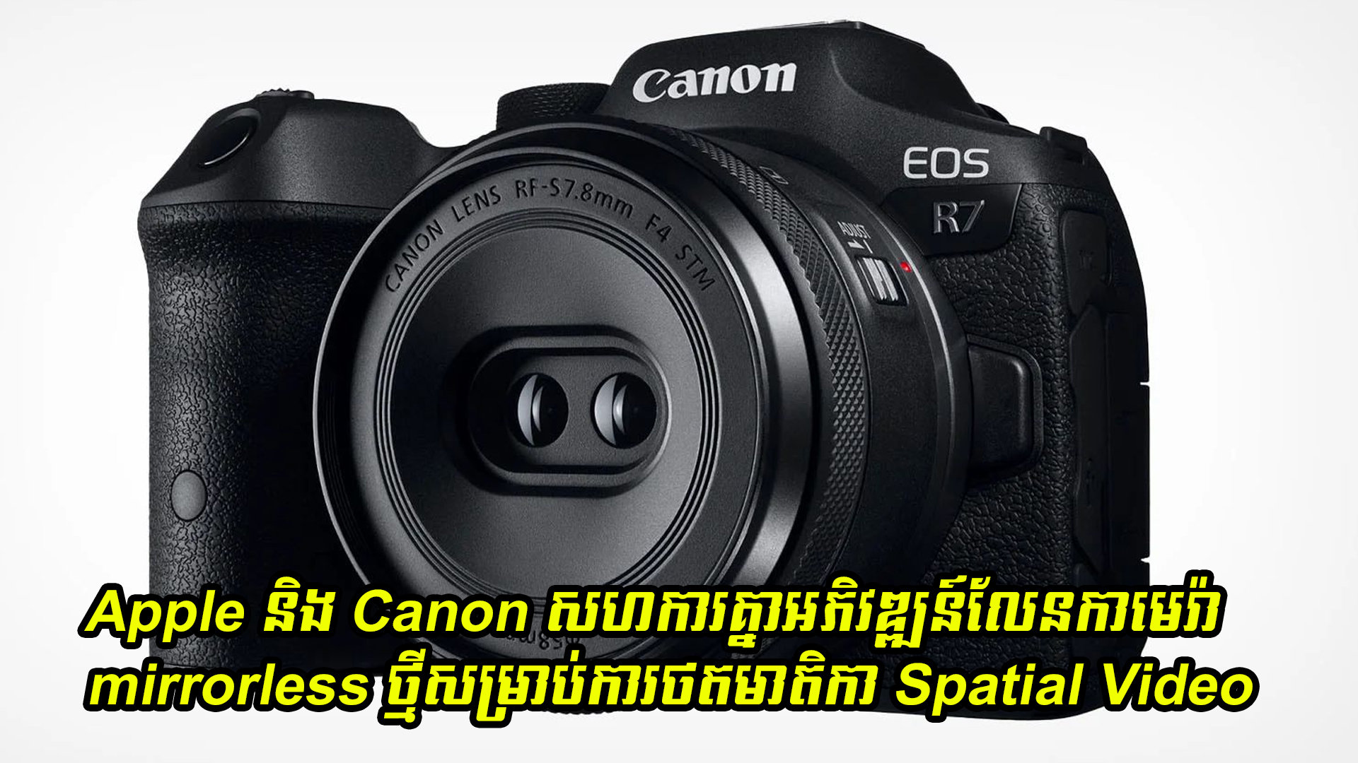 ក្រុមហ៊ុន Apple និង Canon បានប្រកាសពីការចាប់ដៃសហការគ្នាក្នុងអភិវឌ្ឍន៍លែនកាមេរ៉ាថ្មីប្រភេទ Mirrorless Camera lens ដែលរចនាឡើងសម្រាប់ការថតវីដេអូប្រភេទ Spatial video នៅលើ Vision Pro។ សម្រាប់លែនកាមេរ៉ាប្រភេទ RF-S7.8mm F4 STM DUAL lens របស់ Canon គឺមានការឌីស្សាញសម្រាប់ការប្រើប្រាស់ក្នុងការថតវីដេអូមាតិកាបែប Spatial video ជាមួយនឹងឧបករណ៍ Vision Pro Headset។