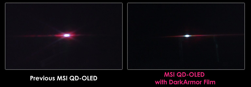 បន្ថែមពីនេះ ម៉ូនីទ័រទាំងពីរនេះ បំពាក់នូវបច្ចេកវិទ្យា DarkArmor Film technology ដែលអាចដោះស្រាយទៅលើបញ្ហានៃ QD-OLED ដោយលុបបំបាត់នុវពណ៌ស្វាយ និងក្រហមចេញពីស្តង់ដារនៃអេក្រង់ QD-OLED panels បានយ៉ាងល្អទៀតផង។ សម្រាប់ Film ថ្មីនេះ អាចបង្កើនទៅលើពន្លឺពណ៌ខ្មៅបានដល់ទៅ 40% ជាមួយនឹងគុណភាពរូបភាពកាន់តែច្បាស់ជាងមុនថែមទៀត។ បន្ថែមពីនេះ បច្ចេកវិទ្យានេះក៏ធន់ទៅនឹងស្នាមឆ្កូតបានដល់ទៅ 2.5 ដងថែមទៀតសម្រាប់សកម្មភាពប្រើប្រាស់ប្រចាំថ្ងៃ។ ម៉ូនីទ័រ MPG 322UR QD-OLED X24 នេះ ក៏មានការប្រើប្រាស់នូវសេនស័រ AI Care Sensor ដែលម៉ូឌែលផ្សេងមិនមាននោះទេ។