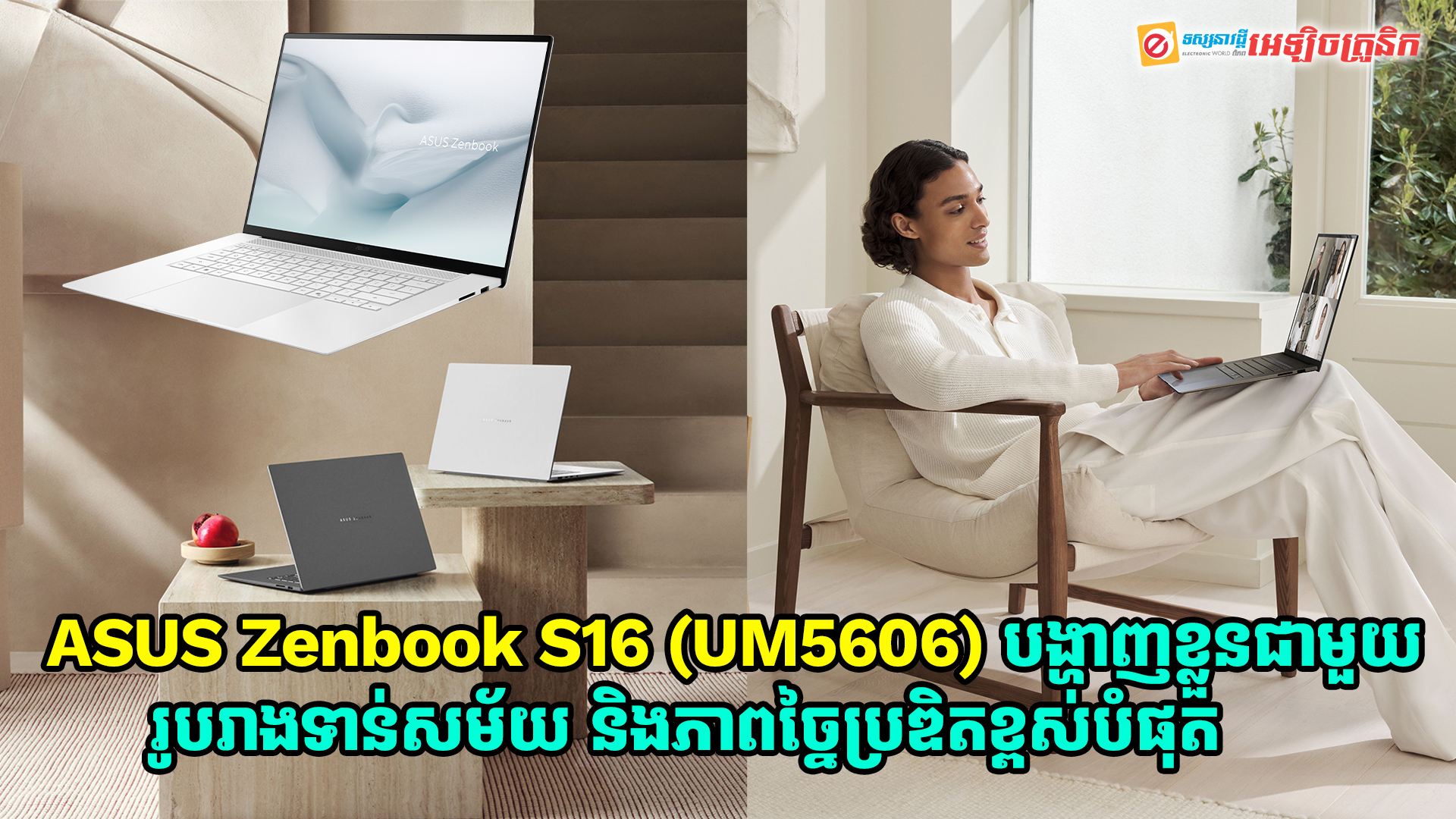 សម្រាប់អ្នកប្រើប្រាស់ដែលត្រូវការកុំព្យូទ័ររូបរាងទាន់សម័យ និងកម្លាំងម៉ាស៊ីនខ្លាំងក្លានោះ កុំព្យូទ័រ Zenbook S16 នេះ គឺជាជម្រើសដ៏សក្តិសមបំផុត។ ឡេបថបថ្មីនេះ គឺមានកម្រាស់ស្តើងត្រឹមតែ 1.1cm និងមានទម្ងន់ស្រាលត្រឹមតែ 1.5Kg ជាពិសេសក៏មានការប្រើប្រាស់នូវ 28-watt CPU TDP ដែលបង្កើនទៅលើប្រព័ន្ធត្រជាក់ vapor-chamber cooling system បានយ៉ាងល្អបំផុត។ សម្រាប់អេក្រង់របស់កុំព្យូទ័រនេះ គឺកម្រិត 3K ASUS Lumina OLED 120Hz 1100-nit ជាមួយនឹង 6 speakers និង WIFI 7 សម្រាប់បង្កើននូវល្បឿនក្នុងការតភ្ជាប់បានលឿនបំផុតក្នុងការប្រើប្រាស់។ Zenbook S16 គឺជាកុំព្យូទ័រដែលបង្កើតឡើងជាមួយនឹងភាពប្រណិត ស្ថាបត្យកម្មកម្រិតខ្ពស់ និងប្រព័ន្ធឆ្លាតវៃជាច្រើនដែលអ្នកប្រើប្រាស់នឹកស្មានមិនដល់នោះទេ។