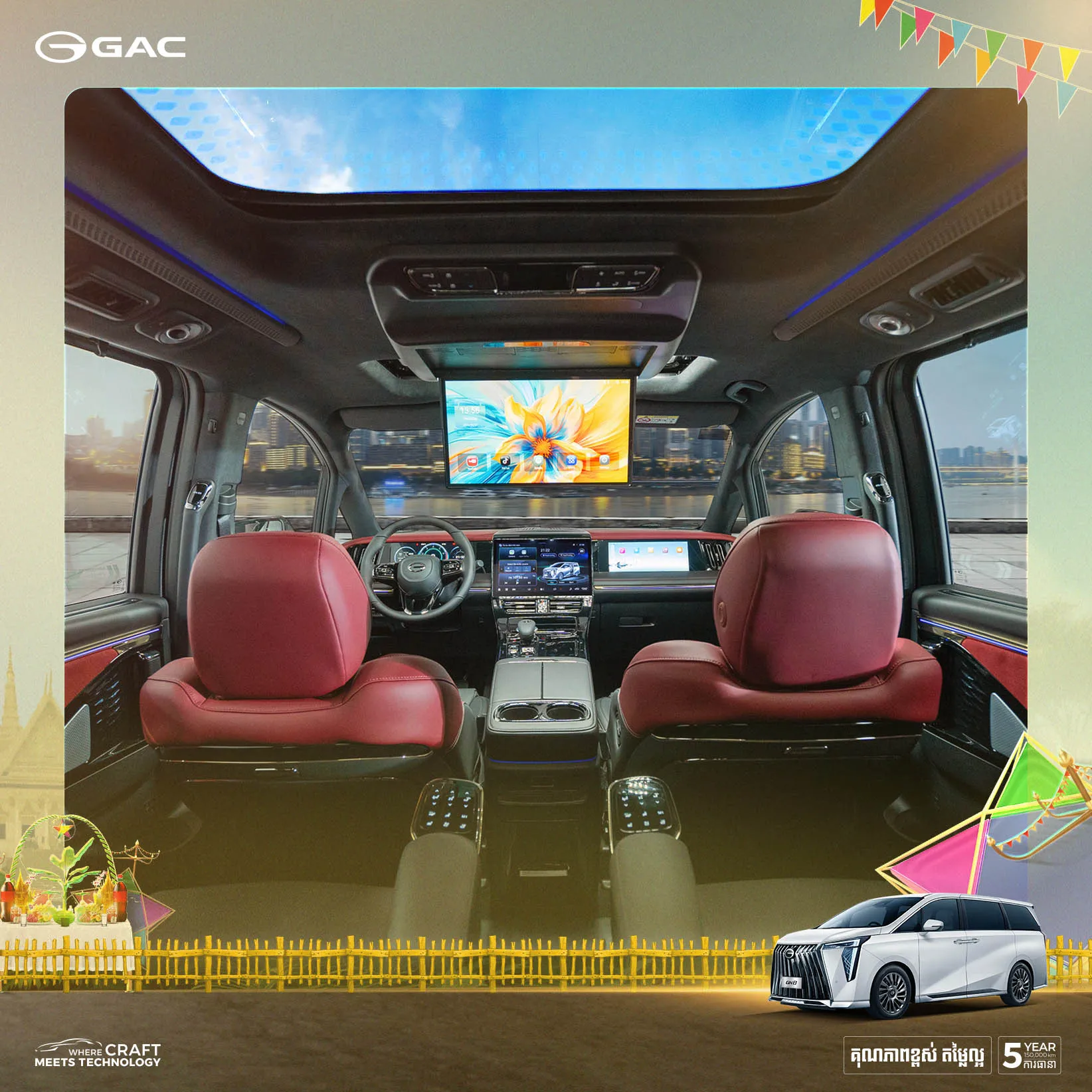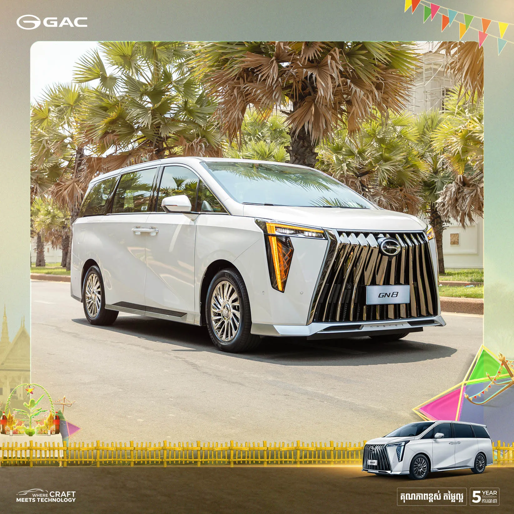 គួរបញ្ជាក់ថា ប្រូម៉ូសិននាឱកាសរដូវកាលចូលឆ្នាំខ្មែរ ផ្តល់ជូនកាតសាំង មានតម្លៃរហូតដល់ទៅ $5,000 នេះ គឺផ្តល់ជូនសម្រាប់អតិថិជន ដែលទិញទៅលើម៉ូឌែលរថយន្ត GAC GN8 ស៊េរីថ្មីឆ្នាំ2026 ជាប្រភេទ Global Version | Master Full Option នាំចូលផ្តាច់មុខដោយក្រុមហ៊ុនផ្លូវការ GAC Cambodia ។ ជាមួយគ្នា រថយន្ត Luxury MPV 7កៅអី GAC GN8 ស៊េរីថ្មីឆ្នាំ2026 បច្ចុប្បន្នកំពុងមានតម្លៃល្អត្រឹមតែ $65,000 ជាពិសេសរថយន្តកំពុងមានក្នុងស្តុកស្រាប់ ទិញភ្លាម បានភ្លាម ប្រើប្រាស់បានមុនចូលឆ្នាំខ្មែរ ព្រមទាំងអាចចំណេញដល់ទៅ $5,000 ភ្លាមៗ។