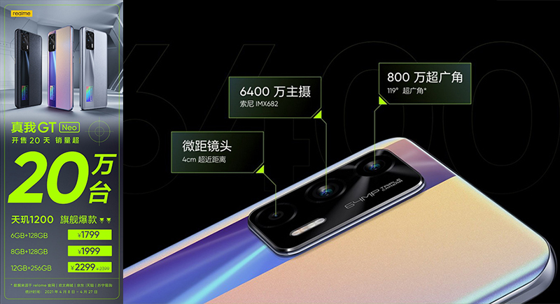 ក្រុមហ៊ុន realme បានប្រកាសចេញទូរស័ព្ទស៊េរីថ្មីម៉ូដែល GT Neo នៅទីផ្សារប្រទេសចិនកាលពីខែមុននេះ និងបានចេញលក់ផ្លូវការណ៍នៅទីផ្សារដដែលនេះកាលពីថ្ងៃទី 08 ខែមេសា ដែលគិតមកដល់ថ្ងៃទី 28 ខែមេសាគឺមានរយះពេល 2០ ហើយ realme ក៏លក់បានចំនួន 20 ម៉ឺនគ្រឿងផងដែរ ដូច្នេះ មានន័យថាមួយថ្ងៃ realme GT Neo លក់បានចំនួន 1 ម៉ឺនគ្រឿង ។