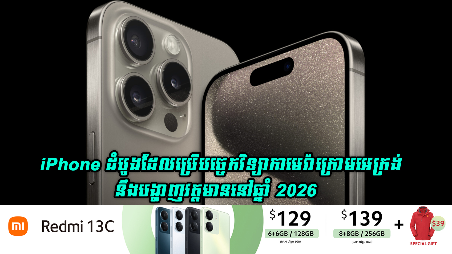 ហើយថ្មីៗនេះបើតាមប្រភពចេញពបណ្តាញសារព័ត៌មានរបស់កូរ៉េខាងត្បូងឈ្មោះថា TheElec បានបង្ហើបថា ទូរស័ព្ទ iPhone ដំបូងដែលមានអេក្រង់លាតពេញផ្ទៃ គ្មានរន្ធទំលុះអេក្រង់ត្រូវបានគេរំពឹងថានឹងបង្ហាញវត្តមាននៅក្នុងឆ្នាំ 2026។ ដែលនេះមានន័យថាទូរស័ព្ទ iPhone ដែលបំពាក់បច្ចេកវិទ្យាកាមេរ៉ាក្រោមអេក្រង់ UDC (Under-Display Camera) ទំនងជានឹងបង្ហាញវត្តមាននៅឆ្នាំ 2026។