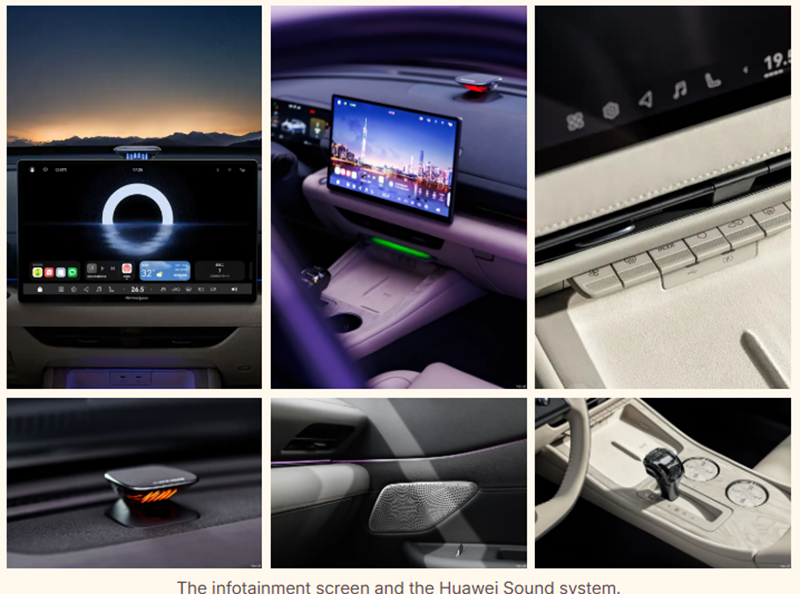 សម្រាប់ប្រព័ន្ធកាប៊ីនឆ្លាតវៃនេះគឺដំណើរការបញ្ជាដោយដៃចង្កូតដែលមានតម្លើងនូវមុខងារប្រើប្រាស់ជាច្រើនហើយនៅក្នុងនោះក៏មានការបំពាក់នូវអេក្រង់ឌីជីថលទំហំ 10.25 អ៊ីងរូមជាមួនិងអេក្រង់កំសាន្តទំហំ 15.6 អ៊ីងដែលជាប្រភេទ Huawei smart display មានការគាំទ្រដោយប្រព័ន្ធ HarmonySpace 5 ផងដែរ។នៅលើប្រព័ន្ធនេះក៏មានការដាក់អោយប្រើប្រាស់ AI និងការបញ្ជាដោយសម្លេងរួមនិង AI-powered smart search voice navigation និង smartphone connectivity ផងដែរ។និយាយពីប្រព័ន្ធសម្លេងវិញគឺមានការប្រើប្រាស់នូវ Huawei Sound system និងមានឧបាល័រចំនួន 17 គ្រាប់។