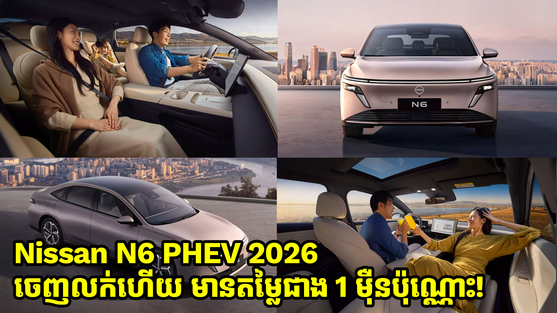 អីចឹងនេះគឺជាឡាន Nissan N6 ស៊េរីឆ្នាំ 2026 ដែលទើបតែបានចេញលក់ជាផ្លូវការ នៅលើទីផ្សារប្រទេសចិន ជាមួយនឹងតម្លៃចាប់ពីខ្ទង់ $15,500 ប៉ុណ្ណោះ។ ឡានតួខ្លួន Sedan ប្រភេទ Plug-in Hybrid មួយនេះ ប្រើម៉ាស៊ីនចំណុះ 1.5L មានកម្លាំង 208 HP និងកម្លាំងរមួល 320 NM អាចរត់ស្ទុះពីកុងទ័រ 0-100 KM/H ប្រើពេលត្រឹមតែ 6.8 វិនាទីប៉ុណ្ណោះ។ វាបំពាក់កញ្ចប់អាគុយទំហំ 21.1 kWh ដែលអាចបើកបរដោយប្រើថាមពលអគ្គិសនីសុទ្ធ បានចម្ងាយ 180 KM (CLTC) នៅពេលសាកភ្លើងពេញម្តងទៀតផង។
