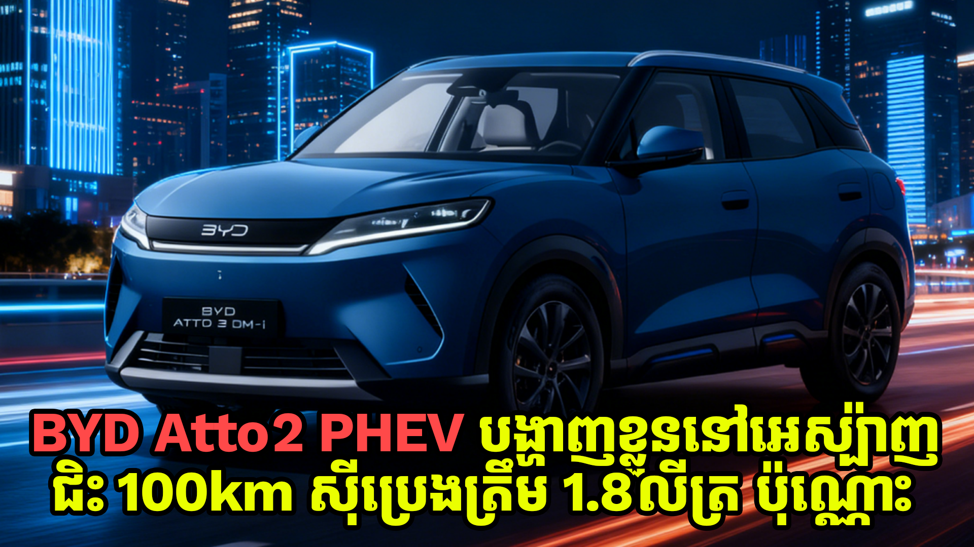 ថ្មីៗនេះ BYD បានរៀបច៉ព្រឹត្តិការណ៌មួយនៅទីក្រុងបាសេឡូណាប្រទេសអេស្ប៉ាញ ដោយមានការបង្ហាញចេញនូវឡានសេរីថ្មី Atto 2 DM i ដែលនេគឺជាម៉ូដែល Plug in hybrid ដំបូងគេបំផុតរបស់ត្រកូល Atto 2។ តាមការបញ្ជាក់ពីក្រុមហ៊ុនបានអោយដឹងថា ប្រព័ន្ធ DM i System នឹងផ្តល់អោយការបើកបរនៅលើអគ្គិសនីបានចម្ងាយ 90km និងទៅលើការចាក់សាំងពេញ និងសាកពេញបើកបានចម្ងាយ 1,020 km។ សម្រាប់ការប្រកាសចេញនៅអេស្ប៉ានេះ BYD Atto 2 PHEV មានតម្លៃ €32,990 ($35,900 USD)។