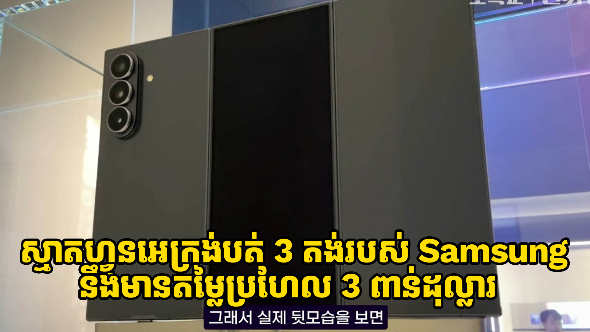 យោងតាមសេចក្តីរាយការណ៌ថ្មីនៅថ្ងៃនេះ បានបញ្ជាក់ថា Galaxy Z TriFold ដែលជាស្មាតហ្វូនអេក្រង់បត់ 3 តង់ជំនាន់ថ្មីរបស់ក្រុមហ៊ុនកូរ៉េខាងត្បូងមួយនេះ នឹងមានការប្រកាសចេញនៅលើទីផ្សារនាថ្ងៃទី 5 ខែធ្នូ ខាងមុខនេះហើយ ដែលស្មាតហ្វូនថ្មីនេះនឹងបង្ហាញខ្លួនជាមួយនិងអេក្រង់លាតធំដល់ទៅ 10 អ៊ីង និងមានការបំពាក់នូថាមពលថ្មទំហំ 5,600mAh ហើយអាចនឹងមានតម្លៃប្រហែល $3,000 ដុល្លារ។ តម្លៃមើលទៅ គឺថ្លៃជាង 2 ដងប្រៀបធៀបជាមួយននិងស្មាតហ្វូនអេក្រង់បត់បាន Z Fold7 ដែលមានលក់នៅលើទីផ្សារនាពេលបច្ចុប្បន្ន។