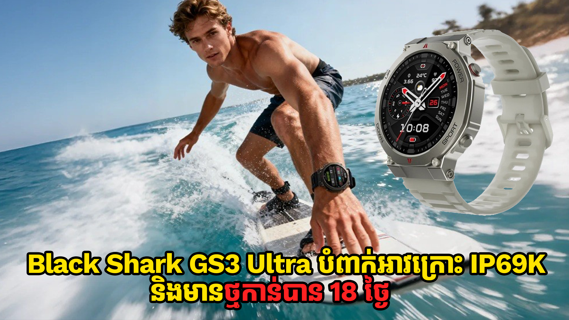ក្រុមហ៊ុន Black Shark ទើបតែបានទម្លាក់ចេញនាឡិកាដៃឆ្លាតវៃស៊េរីថ្មីរបស់ខ្លួនម៉ូដែល GS3 Ultra បន្ទាប់ពីការបង្ហាញវត្តមានរបស់ GS3 កាលពីជាង 1 ឆ្នាំមុន។ Black Shark GS3 Ultra ត្រូវបានក្រុមហ៊ុនធ្វើការកែប្រែការឌីស្សាញថ្មីនៅលើតួរខ្លួនប្រភេទលោហៈមានភាពធន់រឹងមាំជាងមុនជាមួយការបំពាក់នូវប៊ូតុងចុចដែលផ្តល់នូវភាពទំនើបស៊ីវីល័យក្នុងការប្រើប្រាស់ជាងមុន។