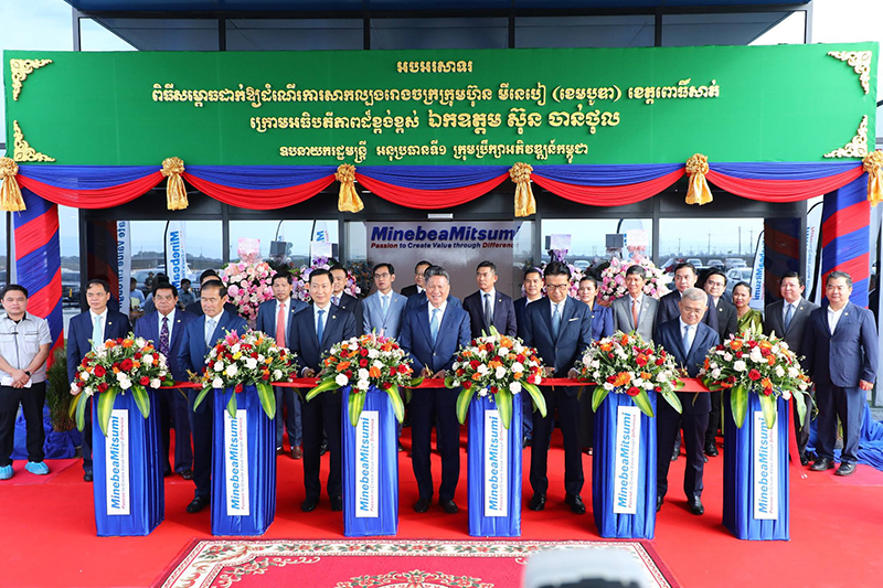 កាលពីទី 10 ខែធ្នូ ឆ្នាំ 2025 ឯកឧត្តម ស៊ុន ចាន់ថុល ឧបនាយករដ្ឋមន្ត្រី អនុប្រធានទី 1 ក្រុមប្រឹក្សាអភិវឌ្ឍន៍កម្ពុជា(ក.អ.ក.) បានអញ្ជើញជាអធិបតីក្នុងពិធីបើកសម្ពោធដាក់ឱ្យប្រើប្រាស់សាកល្បងរោងចក្រថ្មីរបស់ ក្រុមហ៊ុនមីនេបៀ (ខេមបូឌា) សាខាខេត្តពោធិ៍សាត់ ដោយមានការចូលរួមពី ឯកឧត្តមរដ្ឋមន្ត្រីក្រសួងរ៉ែ និងថាមពល និងជាប្រធានក្រុមការងាររាជរដ្ឋាភិបាលចុះមូលដ្ឋានខេត្តពោធិ៍សាត់, លោកនាយកប្រតិបត្តិក្រុមហ៊ុនមីនេបៀ, ឯកឧត្តមអភិបាលនៃគណៈអភិបាលខេត្តពោធិ៍សាត់, ព្រមទាំងឯកឧត្តម លោកជំទាវ លោក លោកស្រី ជាភ្ញៀវកិត្តិយសជាតិ អន្តរជាតិ ថ្នាក់ដឹកនាំ បុគ្គលិក កម្មករនិយោជិតរបស់ក្រុមហ៊ុន។