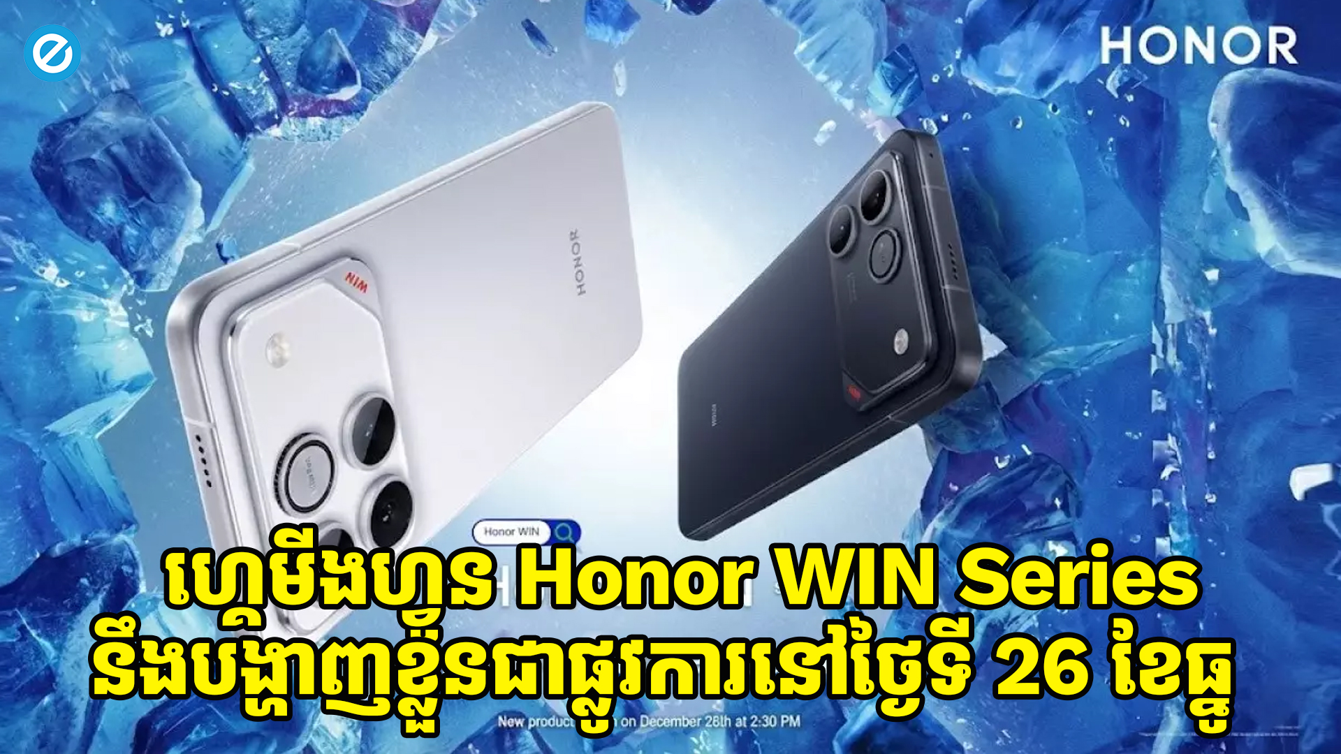 កាលពីថ្ងៃទី 26 ខែធ្នូកន្លងទៅនេះ ក្រុមហ៊ុន Honor បានបញ្ជាក់ថា ស្មាតហ្វូនជំនាន់ថ្មី WIN Series ដែលផ្តោតទៅលើ E-Sports នេះ នឹងបង្ហាញខ្លួននៅខែនេះហើយ។ ស្របពេលជាមួយគ្នានេះ ក្រុមហ៊ុន Honor ក៏ទើបតែចែករំលែកនូវការឌីស្សាញរបស់ស្មាតហ្វូនជំនាន់ថ្មី WIN Series និងមានការប្រកាសថា ស្មាតហ្វូនជំនាន់ថ្មីនេះ នឹងបង្ហាញខ្លួននៅថ្ងៃទី 26 ខែធ្នូខាងមុខនេះ។ ស្មាតហ្វូនជំនាន់ថ្មីនេះ នឹងមាន 2 ម៉ូដែលគឺ Honor WIN និង Honor WIN RT។
