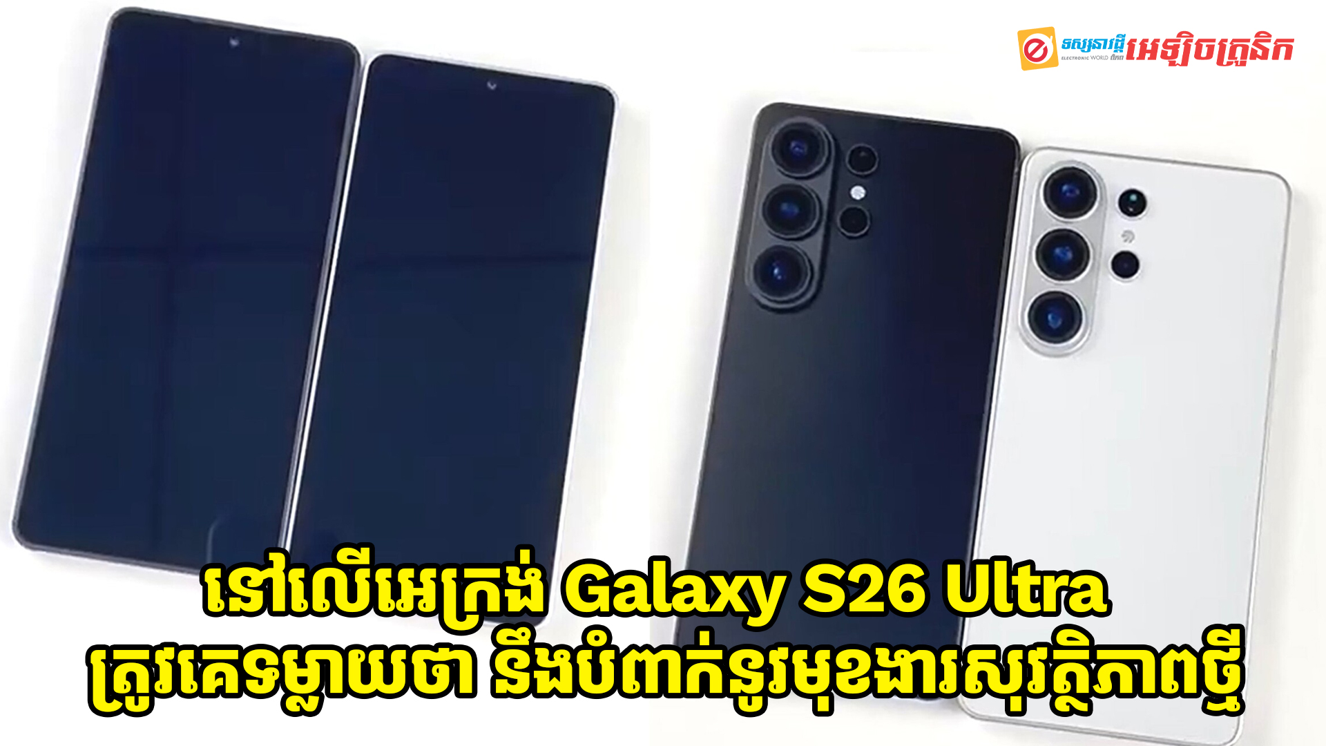 យោងតាមព័ត៌មានថ្មីនៅពេលថ្មីៗនេះ បាននិយាយថា កំពូលស្មាតហ្វូនស៊េរីថ្មី Galaxy S26 Ultra របស់ក្រុមហ៊ុនបច្ចេកវិទ្យាយក្សកូរ៉េខាងត្បូង Samsung នឹងមិនមានការ Upgrade ច្រើននោះទេ បើធៀបជាមួយនឹងស្មាតហ្វូនជំនាន់មុនរបស់ខ្លួន។ ប៉ុន្តែនៅថ្ងៃនេះ មានលេចចេញនូវពាក្យចចាមអារ៉ាមថ្មីមួយទៀត បានបញ្ជាក់ជាថ្មីថា នៅលើស្មាតហ្វូនថ្មីនេះ គឺនឹងមានមុខងារថ្មីគឺ Invisible Screen ដែលមានន័យថា អ្នកដទៃ គឺមិនអាចមើលទៅលើអេក្រង់របស់អ្នកប្រើប្រាស់បាននោះទេ។