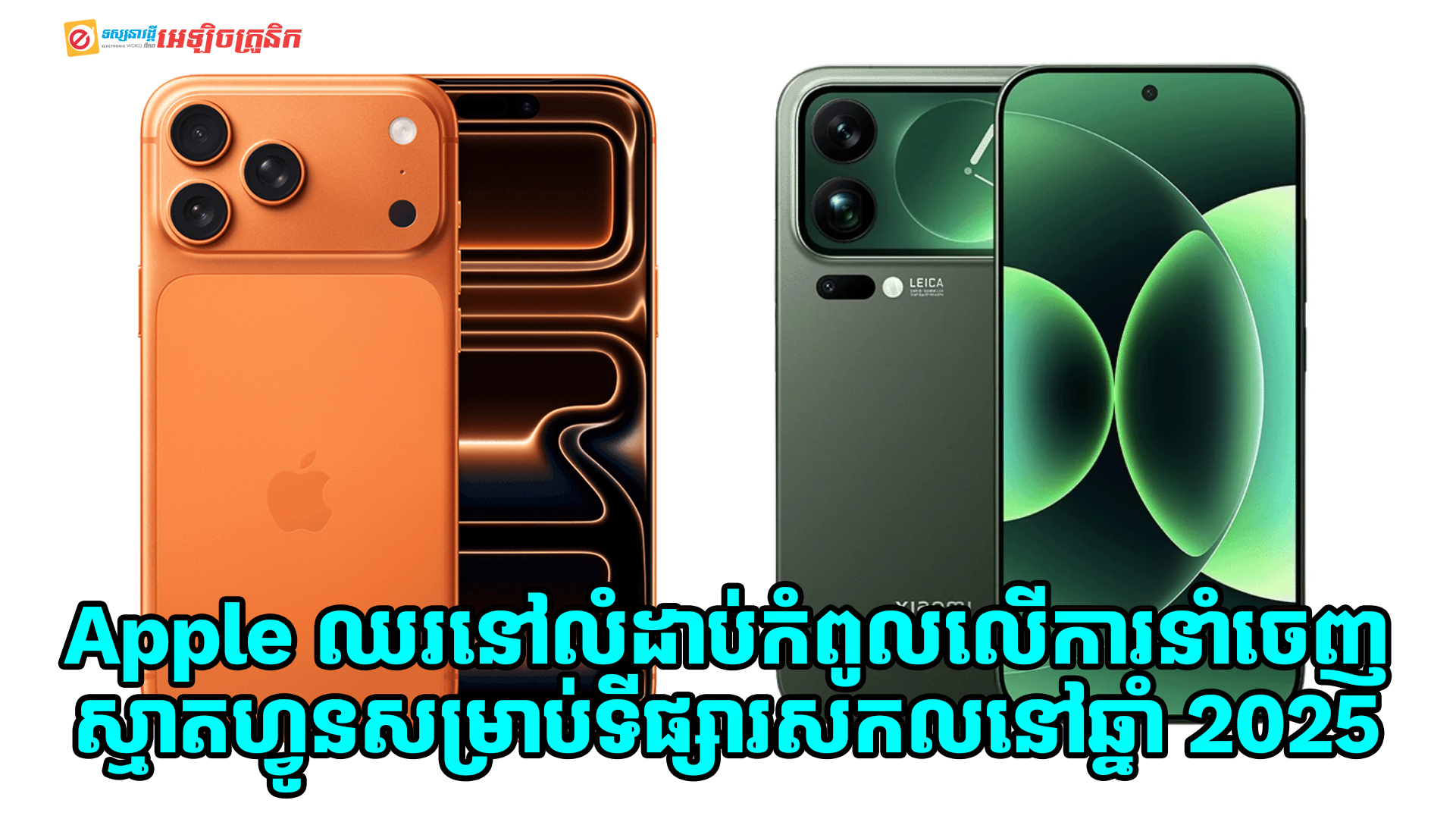 យោងតាមទិន្នន័យចេញពីស្ថាប័ន Counterpoint Research បានអោយដឹងថា ក្រុមហ៊ុន Apple បានក្លាយជាក្រុមហ៊ុនចែកចាយស្មាតហ្វូននាំមុខគេរបស់ពិភពលោក សម្រាប់ការនាំចេញនៅក្នុងឆ្នាំ 2025 នេះ។ ក្រុមហ៊ុននេះ មានចំណែកទីផ្សារចំនួន 20% សម្រាប់ទីផ្សារសកលដែលមានកំណើន 10% ធៀបទៅនឹងឆ្នាំមុននេះ ហើយក្រុមហ៊ុននេះ ក៏ស្ថិតនៅចំណាត់ថ្នាក់ខ្ពស់បំផុតនៅក្នុងចំណោមក្រុមហ៊ុន Top 5 នេះ។ ការនាំចេញស្មាតហ្វូនសម្រាប់ទីផ្សារសកលមានការកើនឡើង 2% នៅក្នុងឆ្នាំ 2025 នេះ។