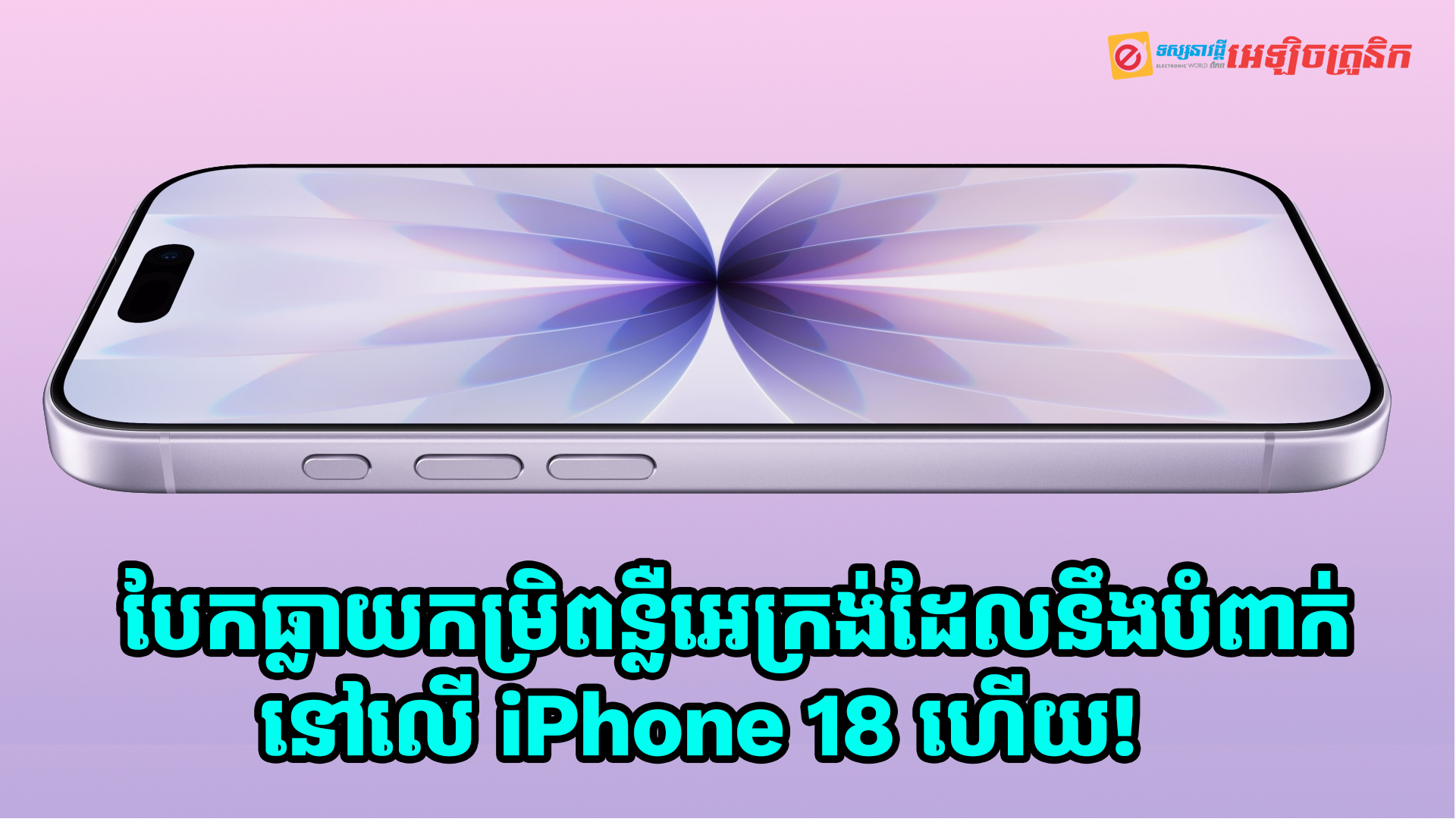 សូមជំរាបថា មុននេះបន្តិចធ្លាប់មានព័ត៌មានផ្សាយថា iPhone 18 នឹងមានអេក្រង់ទំហំ 6.27 អ៊ីងជាប្រភេទ LTPO OLED display រត់បានជាមួយល្បឿន 120Hz refresh rate ហើយនិងមានការគាំទ្រដោយរន្ធអេក្រង់ Dynamic Island។ សម្រាប់វត្តមានរបស់ iPhone 18 ក៏ត្រូវបានពាក្យចចាមអារ៉ាមនិយាយថា នឹងមិនបង្ហាញចេញនៅខែកញ្ញានេះទេ គឺនឹងប្តូរទៅបង្ហាញចេញនៅដើមឆ្នាំ 2027 ជាមួយនិងស្មាតហ្វូន iPhone 18e ខាងមុខជំនួសវិញ ។