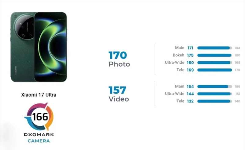 នៅពេលនេះ Xiaomi 17 Ultra បានបង្ហាញវត្តមាននៅលើបញ្ជីតេស្តសមត្ថភាពកាមេរ៉ាលំដាប់ពិភពលោក DxOMark rankings ហើយតាមរយៈនៃការធ្វើតេស្តទៅលើការផលិតរូបភាព និងវីដេអូ នៅលើស្មាតហ្វូននេះបានបង្ហាញថា ស្មាតហ្វូននេះពិតជាខ្លាំង និងអាចប្រជែងជាមួយនិងដៃគូរធំជាច្រើនថែមទៀតផង។ តាមរយៈនៃការអាប់ដែតទៅលើប្រព័ន្ធថតរូបនៅលើស្មាតហ្វូនជំនាន់ថ្មីរបស់ខ្លួននាពេលកន្លងមកនេះ ក្រុមហ៊ុន Xiaomi ត្រូវបានគេមើលឃើញថា គឺមានបហិច្ឆតាខ្លាំងមែនទែន ដើម្បីក្លាយជាអ្នកនាំមុខគេនៅលើទីផ្សារស្មាតហ្វូនដែលមានកាមេរ៉ាខ្លាំង។