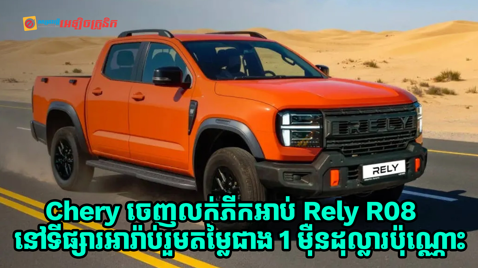 ក្រុមហ៊ុន Chery Automobile បានចេញលក់រថយន្តភីកអាប់ទំហំមធ្យមម៉ូដែល Rely R08 របស់ខ្លួននៅទីផ្សារអារ៉ាប់រួម ជាមួយ នឹងតម្លៃចាប់ពីខ្ទង់ $17,125 តម្លៃបូកទាំងពន្ធអាករបន្ថែម (VAT)។ Chery Rely R08 ជាប្រភេទ mid-size pickup truck ដែលមានធុងផ្ទុកប្រេងឥន្ធនៈចំណុះ 80 លីត្រ និងមានសមត្ថភាពផ្ទុកទំនិញរហូតដល់ 1,000 គីឡូក្រាមនៅគ្រែដឹកខាងក្រោយ។ ឡាន Pick up របស់ក្រុមហ៊ុនចិនមួយនេះមានជម្រើសពីរផ្សេងគ្នា គឺជម្រើសប្រើម៉ាស៊ីនសាំង និងជម្រើសប្រើម៉ាស៊ីនម៉ាស៊ូត។