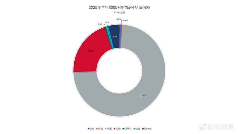 តាម RDObservation គឺបានបញ្ចេញនូវរបាយការណ៍មួយសម្រាប់ទីផ្សារស្មាតហ្វូនរបស់ចិននៅក្នុងឆ្នាំ 2025 នេះ ហើយតាមការវិភាគទៅលើស្មាតហ្វូនប្រណិតនេះ ក្រុមហ៊ុន Huawei និង Apple ស្ថិតនៅចំណាត់ថ្នាក់កំពូល។ របាយការណ៍នេះបានបង្ហាញអំពីក្រុមហ៊ុនម៉ាកយីហោកំពូលចំនួន 5 នៅក្នុងទីផ្សារស្មាតហ្វូនរបស់ចិនពេញមួយឆ្នាំ 2025 នេះ។ ក្រុមហ៊ុនបច្ចេកវិទ្យាទាំងអស់ធ្វើបានល្អ ប៉ុន្តែក្រុមហ៊ុន Apple មានចំណែកទីផ្សារច្រើនជាងពាក់កណ្តាលផងដែរ។