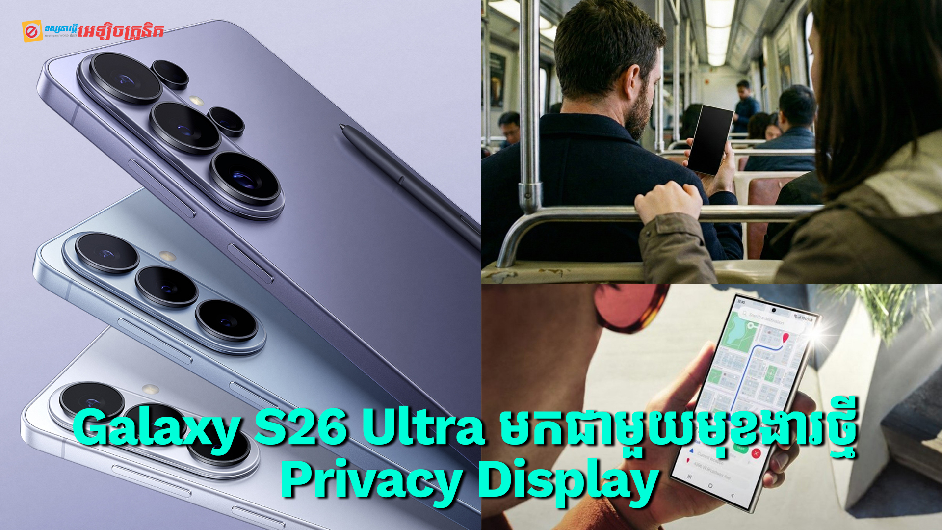 ដូចការគ្រោងទុកកាលពីយប់មិញនេះ ក្រុមហ៊ុន Samsung ពិតជាបានប្រារព្ធព្រឹត្តិការណ៌ Galaxy Unpacked របស់ខ្លួនជាមួយនិងការប្រកាសចេញនូវស្មាតហ្វូនជំនាន់ថ្មី នៃត្រកូល Galaxy S-series ដែលមានការអាប់ដែតជាមួយនិងបន្ទះឈីបជំនាន់ចុងក្រោយរបស់ Qualcomm។ ស្មាតហ្វូន Galaxy S26 Ultra ដែលជាម៉ូដែលមួយក្នុងចំណោមម៉ូដែលទាំងបី គឺមានការបំពាក់មកជាមួយនូវមុខងារថ្មី Privacy Display រួមនិងបន្ទះឈីបស៊េរីថ្មីចុងក្រោយ Snapdragon 8 Elite Gen 5 for Galaxy ក៏ដូចជាការអាប់ដែតទៅលើកម្លាំងសាក fastest charging ធំជាងមុនផងដែរ។