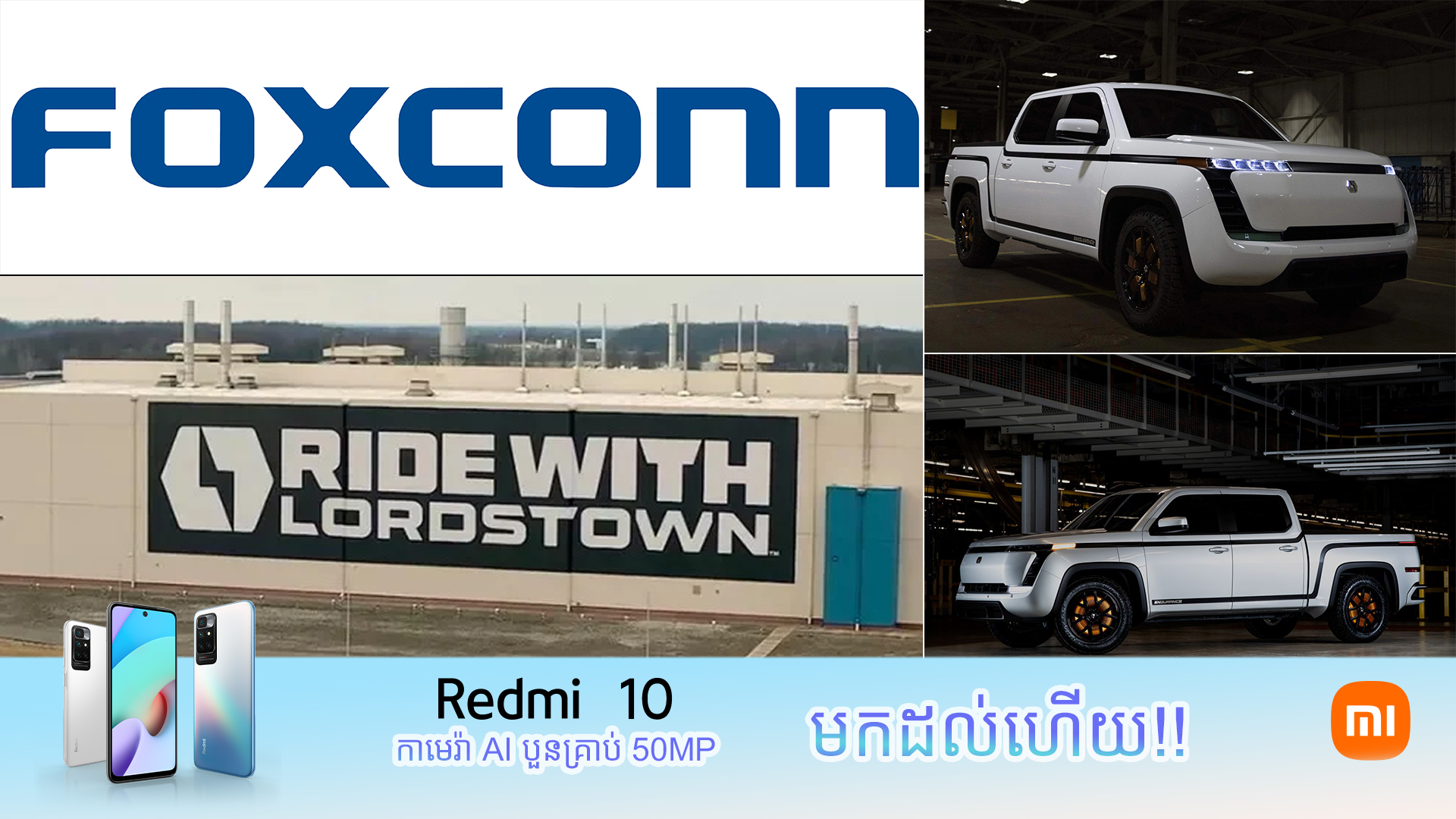 Foxconn គឺជាក្រុមហ៊ុនសំខាន់បំផុតដែលទទួលរ៉ាប់រងលើការផលិតទូរស័ព្ទ iPhone និងឧបករណ៍ iOS ជាច្រើនទៀតឲ្យក្រុមហ៊ុន Apple។ ហើយថ្មីៗនេះក្រុមហ៊ុនបច្ចេកវិទ្យាដែលមានមូលដ្ឋាននៅកោះតៃវ៉ាន់មួយនេះបានប្រកាសទិញយកក្រុមហ៊ុនផលិតរថយន្តអគ្គិសនីរបស់អាមរិកឈ្មោះថា Lordstown Motor Ohio EV ក្នុងតម្លៃខ្ទង់ប្រហែល 230 លានដុល្លារអាមេរិក។ ក្នុងរបាយការណ៍ទិញលក់នេះក្រុមហ៊ុន Foxconn នឹងស្ថិតនៅពីក្រោយគម្រោងការផលិតរថយន្តអគ្គិសនីប្រភេទ Pickup Truck របស់ក្រុមហ៊ុន Lordstown Motor។