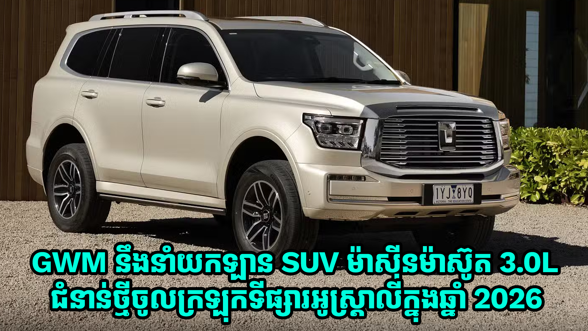 ក្រុមហ៊ុន Great Wall Motor ឬ GWM បានត្រៀមខ្លួនក្នុងនាំយករថយន្ត SUV ស៊េរីថ្មីដែលបំពាក់ម៉ាស៊ីនម៉ាស៊ូត 3.0-Litre ជំនាន់ថ្មី ចូលទៅក្រឡុកទីផ្សាររថយន្ត SUV ក្នុងប្រទេសអូស្ត្រាលីនៅពាក់កណ្តាលឆ្នាំ 2026។ ចំពោះរថយន្ត 4WD SUV បំពាក់ម៉ាស៊ីនជំនាន់ថ្មី ដែល GWM ត្រៀមនាំចូលទៅកាន់ទីផ្សារអូស្ត្រាលីនៅឆ្នាំក្រោយនេះ គឺជាម៉ូដែល Tank 500 និង Cannon Alpha។