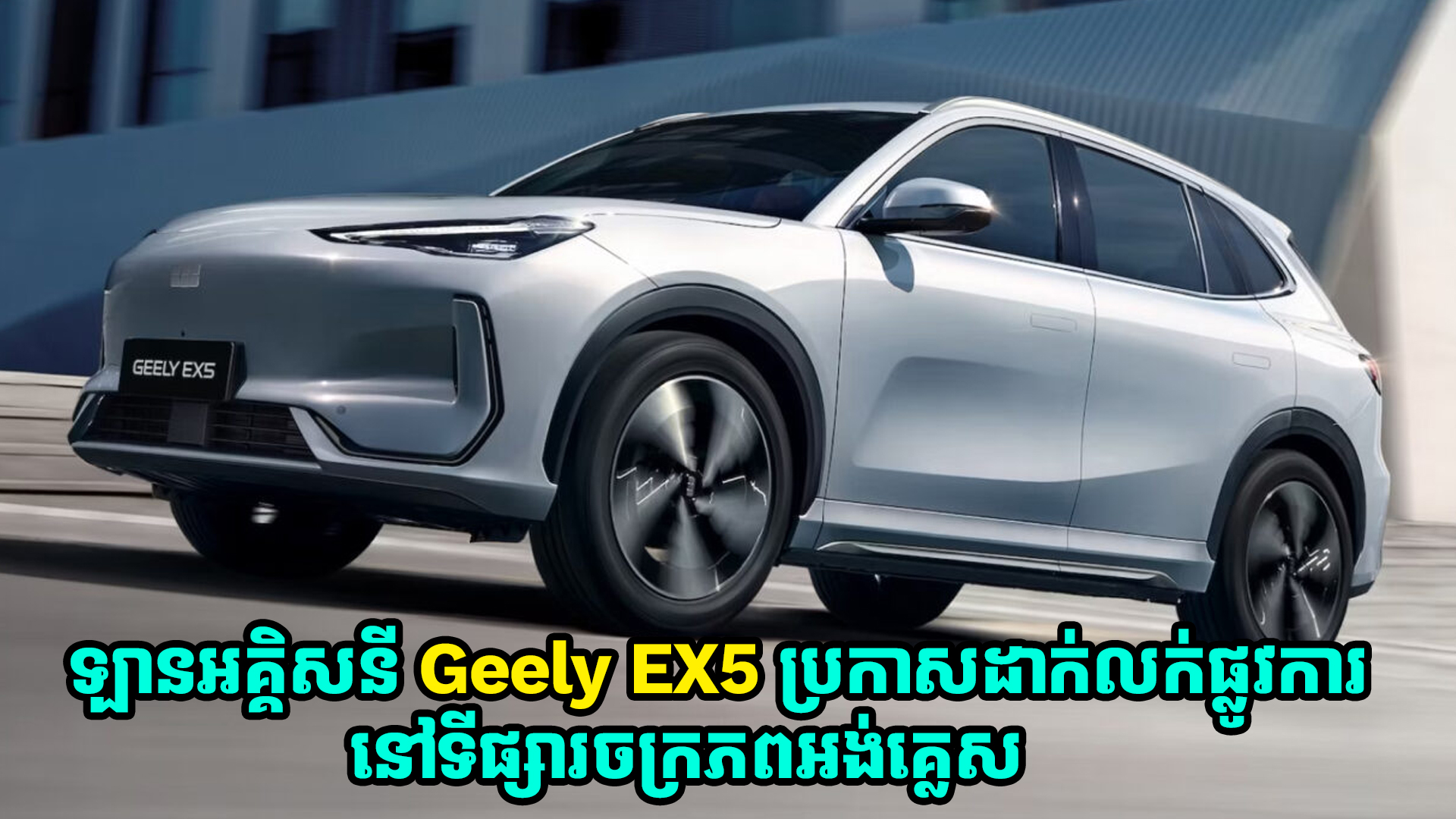 ឡានអគ្គិសនីប្រភេទ Crossover EV ស៊េរីថ្មីម៉ូដែល Geely EX5 បានចូលដល់ទីផ្សារចក្រភពអង់គ្លេសជាមួយនឹងតម្លៃខ្ទង់ $42,970។ Geely EX5 គឺជា Crossover SUV EV ដែលជាគូប្រជែងទីផ្សារជាមួយនឹងម៉ូដែល Hyundai Ioniq 5 និង Skoda Enyaq។ ឡានអគ្គិសនីស៊េរីថ្មីនេះ ប្រើប្រាស់ម៉ូទ័រអគ្គិសនីមួយ មានកម្លាំង 215 សេះ និងកញ្ចប់ថ្ម LFP ទំហំ 60.2kWh សាកភ្លើងពេញម្តងអាចជិះបានចម្ងាយ 267 ម៉ាយល៍ ឬជាង 429km។