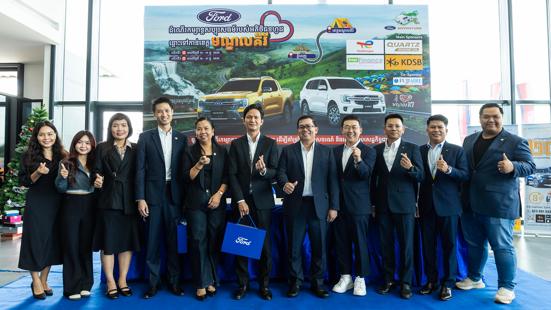 ដំណើរកំសាន្ត FORD Adventure ឆ្នាំ២០២៥ នេះ រៀបចំឡើងដោយផ្នែករថយន្តFord នៃក្រុមហ៊ុន អ អិម អេ ខេមបូឌា (RMA Cambodia) និងចូលរួមសហការឧបត្ថម្ភកម្មវិធីធំដោយក្រុមហ៊ុន TotalEnergies, ក្រុមហ៊ុន BSP Finance, ធនាគារ KB Daehan Specialized Bank Plc., និងក្រុមហ៊ុនម៉ាស៊ីនត្រជាក់ Fuji Aire ។