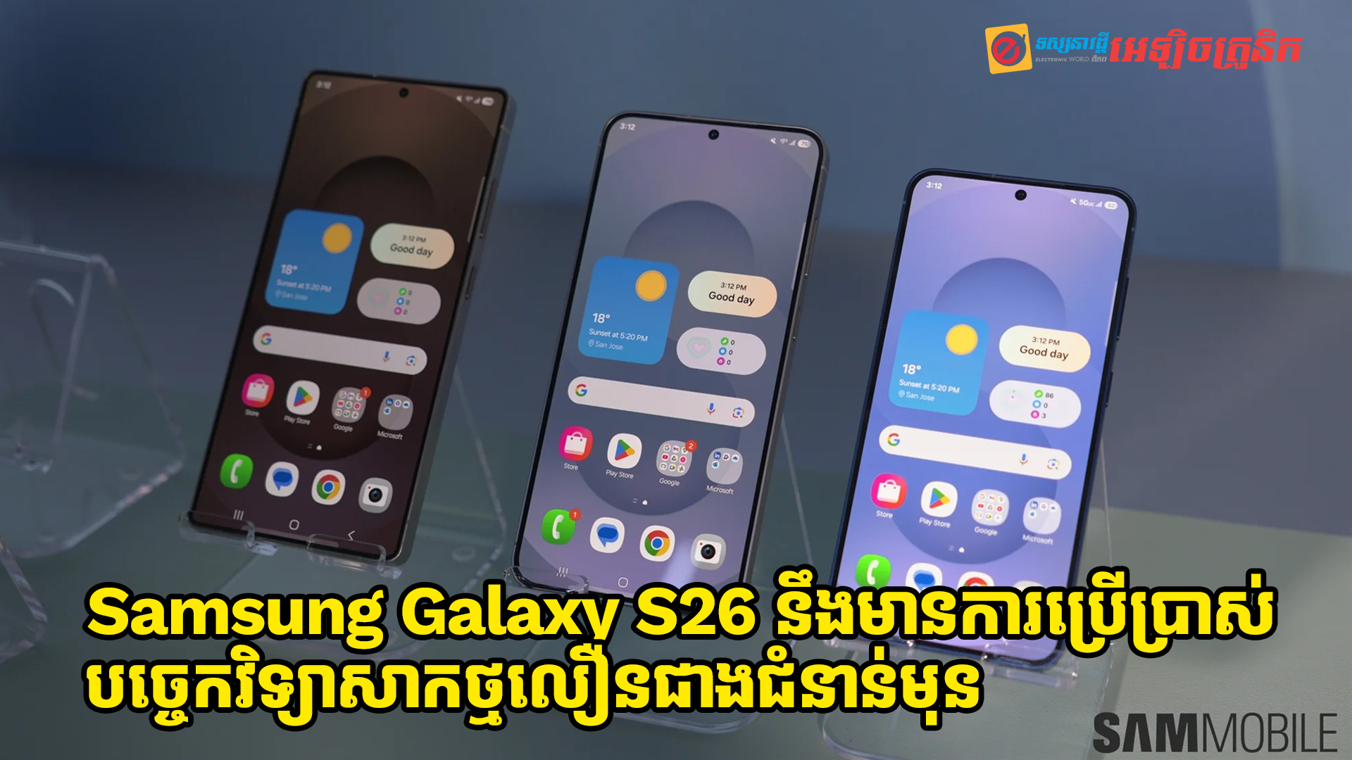 ស្មាតហ្វូនជំនាន់ថ្មី Samsung Galaxy S26 Series ទាំងបីនេះ នឹងមានការប្រកាសចេញនៅលើទីផ្សារនាថ្ងៃទី 25 ខែកុម្ភៈ ខាងមុខនេះហើយ។ សូមជំរាបថា ព័ត៌មានខាងលើនេះ គ្រាន់តែជាការបែកធ្លាយក្រៅផ្លូវការណ៌តែប៉ុណ្ណោះ សម្រាប់ព័ត៌មានជាក់លាក់ពីក្រុមហ៊ុននៅមិនទាន់មានបញ្ជាក់នោះទេ។
