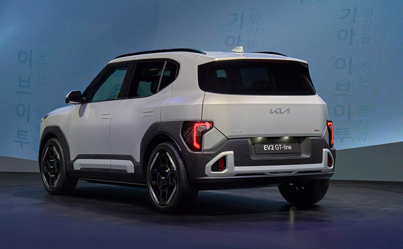 អីចឹងនេះគឺជាឡានអគ្គិសនី Kia EV2 ស៊េរីថ្មី ដែលទើបតែបានបង្ហាញខ្លួន នៅលើទីផ្សារបរទេស ជាប្រភេទ SUV អគ្គិសនីតម្លៃសមរម្យ អាចចាប់ពីខ្ទង់ $26,000 ប៉ុណ្ណោះ នៅពេលចេញលក់ជាផ្លូវការ។ Kia EV2 ថ្មីនេះ ផ្តល់ជម្រើសអាគុយចំនួន 2 ដោយជម្រើសទី 1 មានថ្មទំហំ 42.2 kWh ប្រើម៉ូទ័រអគ្គិសនី 1 មានកម្លាំង 145 HP អាចបើកបរបានចម្ងាយ 320 KM និងជម្រើសទី 2 មានថ្មទំហំ 61 kWh អាចបើកបរបានចម្ងាយ 450 KM នៅពេលសាកភ្លើងពេញម្តង។