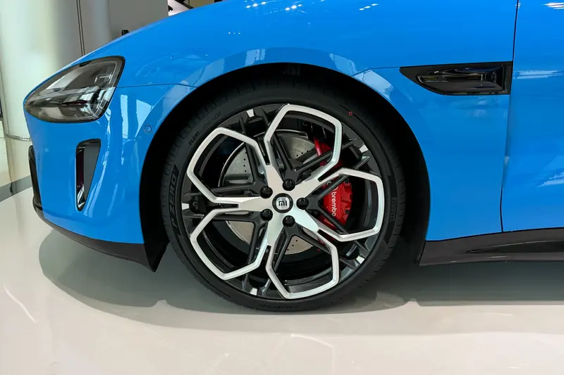 Xiaomi SU7 ជំនាន់ថ្មី បំពាក់យ៉ាន់កង់ថ្មីទំហំ 20-inch ជាមួយដង្គៀបហ្វ្រាំងពណ៌ក្រហម។ New Xiaomi SU7 ប្រើប្រាស់សម្បកកង់មុខខ្នាត 245mm និងសម្បកកង់ក្រោយខ្នាត 265mm។ នៅផ្នែកខាងក្រោយមានការឌីស្សាញរំលេចជាមួយបណ្តុំចង្កៀង “halo taillights” ជាមួយនិង active & retractable electric spoiler។ គ្រប់ម៉ូដែល Xiaomi SU7 ជំនាន់ថ្មី គឺនឹងមានបំពាក់នូវប្រព័ន្ធសែនស័រ LiDAR មួយគ្រាប់, 4D millimeter-wave radar និងគាំទ្រដំណើរការដោយបន្ទះឈីបកម្រិតខ្ពស់ដែលមានភាពឆ្លាតវៃដល់ទៅ 700TOPS សម្រាប់ជំនួយដល់ប្រព័ន្ធជំនួយការបើកបរកម្រិតខ្ពស់ កាន់តែមានប្រសិទ្ធិភាព និងសុវត្ថិភាពក្នុងការបើកបរ។
