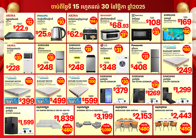 **ការផ្ដល់ជូនដ៏ពិសេសនេះចាប់ពីថ្ងៃទី15 រហូតដល់ថ្ងៃទី30 ខែវិច្ឆិកា ឆ្នាំ2025 នេះតែប៉ុណ្ណោះ។