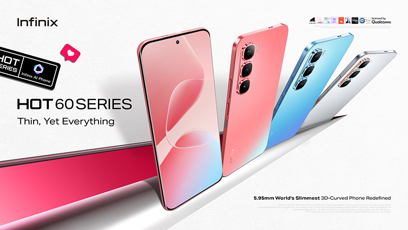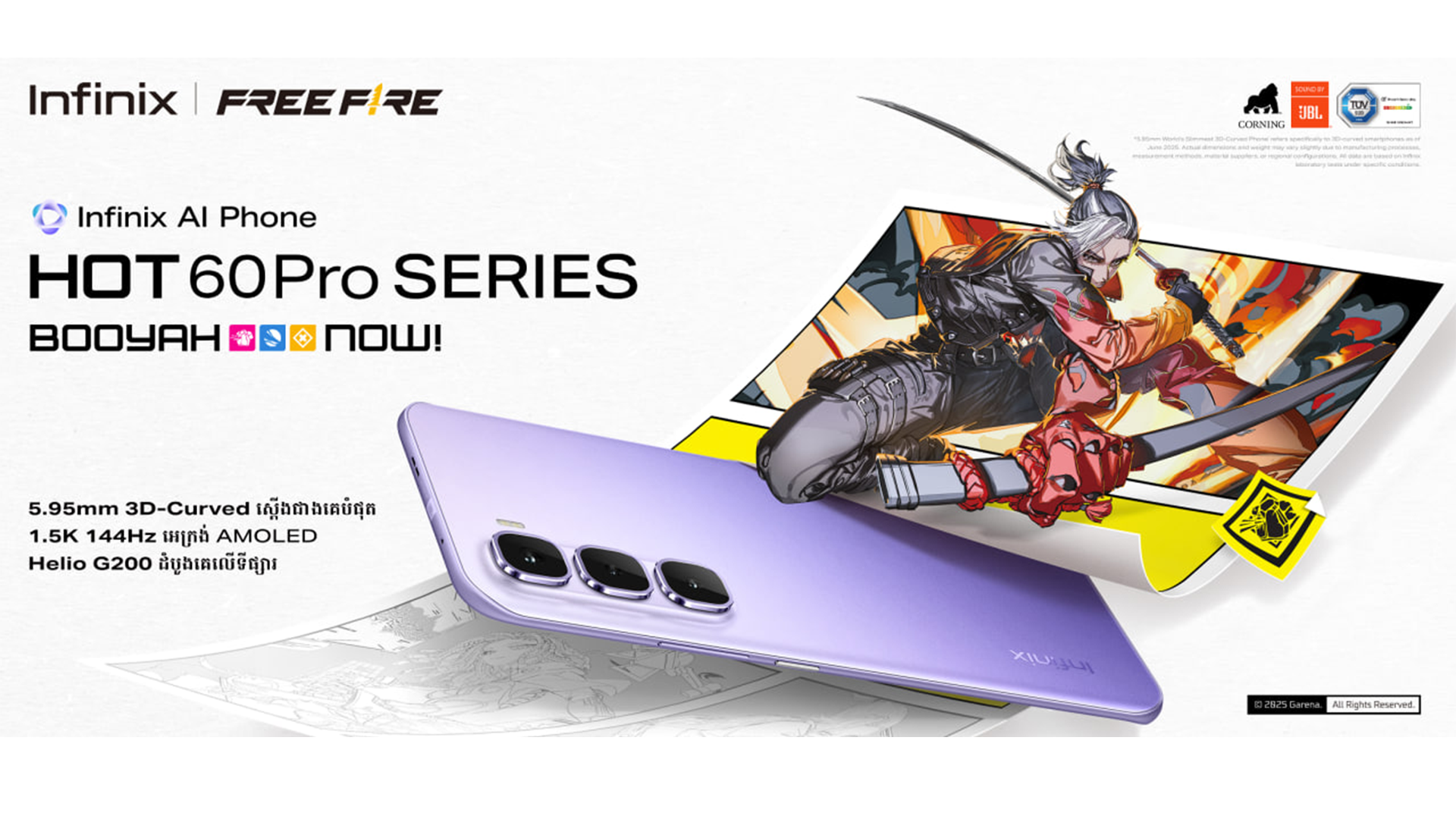 Infinix នឹងចេញលក់ទូរសព្ទអេក្រង់កោង 3D ស្ដើងបំផុត Infinix HOT 60Pro Series នៅក្នុងទីផ្សារកម្ពុជា។ ស្មាតហ្វូន HOT 60Pro Series ក៏ជាការសហការជាមួយហ្គេមដ៏ពេញនិយម FreeFire ផងដែរ។ ក្នុងនោះផងដែរ Infinix HOT 60 Pro+ មានរាងស្តើងត្រឹមតែ 5.95 មីលីម៉ែត្រនៅចំណុចស្តើងបំផុតរបស់វា ហើយត្រូវបានទទួលពានរង្វាន់ Guinness World Record ជាផ្លូវការសម្រាប់ជា ទូរសព្ទកោង 3D ស្ដើងបំផុតរបស់ពិភពលោក នៅថ្ងៃទី 20 ខែសីហា ឆ្នាំ 2025 នៅប្រទេសឥណ្ឌូនេស៊ី។