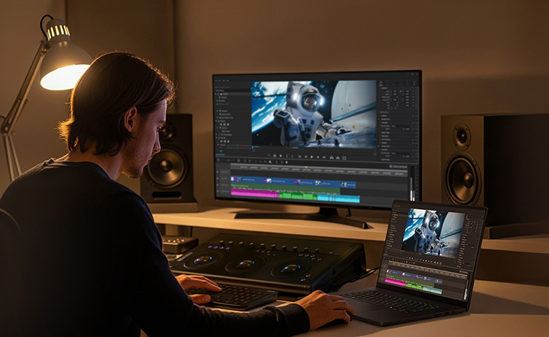 សម្រាប់អ្នកបង្កើតវីដេអូ Windows នោះ ProArt P16 ជាមួយនឹង NVIDIA RTX 50 Series Laptop GPUs តំណាងឲ្យព្រឹត្តិការណ៍ដ៏ពិតប្រាកដមួយ។ ដំណើរការការងារដែលធ្លាប់ទាមទារ workstation កម្រិតខ្ពស់ ឥឡូវនេះអាចត្រូវបានសម្រេចនៅគ្រប់ទីកន្លែង ចាប់ពីការបង្កើតរូបភាពល្បឿនលឿន រហូតដល់ការកាត់តវីដេអូដែលប្រសើរឡើងដោយ AI និងការបញ្ចប់ HDR។ ProArt P16 ជាមួយនឹង RTX 50 Series Laptop GPUs មិនត្រឹមតែបង្កើនប្រសិទ្ធភាពប៉ុណ្ណោះទេ — វាបានកំណត់ឡើងវិញនូវអ្វីដែលអាចធ្វើទៅបាននៅក្នុងការបង្កើតវីដេអូចល័ត។