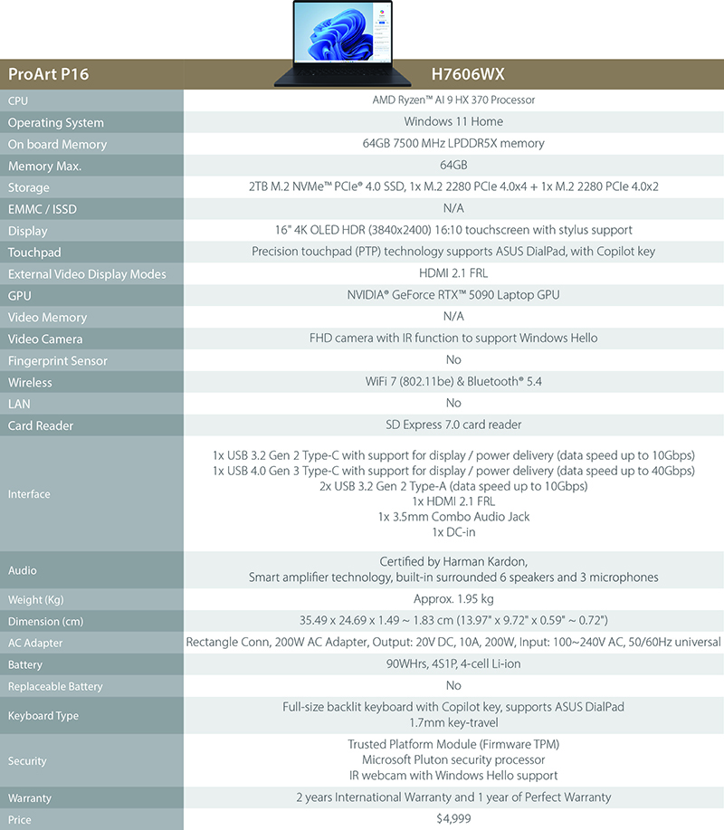 ProArt P16 (H7606WX) នឹងចាប់ផ្តើមលក់នៅថ្ងៃទី 25 ធ្នូ 2025 នៅប្រទេស កម្ពុជា ក្នុងតម្លៃ $4,999។