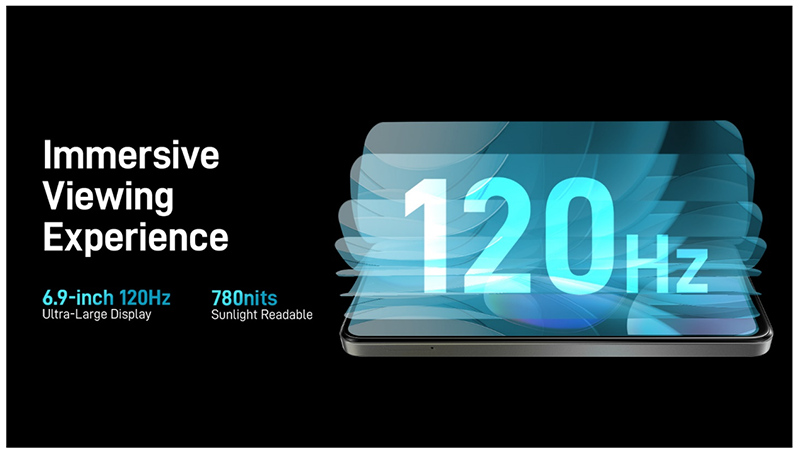 •អេក្រង់៖ 6.9" HD+, និងល្បឿន 120Hz, កម្រិតពន្លឺ 780nits