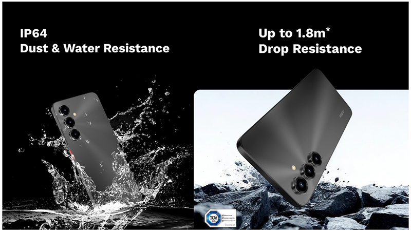 ស្មាតហ្វូននេះត្រូវបានផលិតឡើងដោយផ្តោតលើភាពធន់ ដោយទទួលបានវិញ្ញាបនបត្រ TÜV Drop Resistance ដែលអាចទ្រាំទ្រនឹងការធ្លាក់ពីកម្ពស់រហូតដល់ 1.8 ម៉ែត្រ។ លើសពីនេះ វាក៏មានប្រព័ន្ធការពារធូលី និងទឹកកម្រិត IP64 ដែលផ្តល់ភាពជឿជាក់រាល់ការប្រើប្រាស់ក្នុងគ្រប់ស្ថានភាព។
