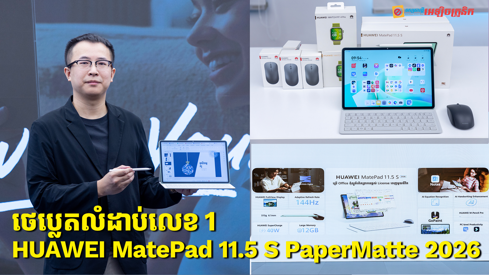 •HUAWEI MatePad 11.5 S PaperMatte Edition 2026 បើកកុម្ម៉ង់ទុកមុនហើយ និងមានការផ្តល់ជូនពិសេសធំៗពីក្រុមហ៊ុនផងដែរ ដូចជា Original Keyboard, original mouse, ហើយកាន់តែចំណេញលោកអ្នកគ្រាន់តែបន្ថែមលុយ 30$ នឹងទទួលបាន Huawei Watch Fit 4 Pro មានតម្លៃពេញ 229$