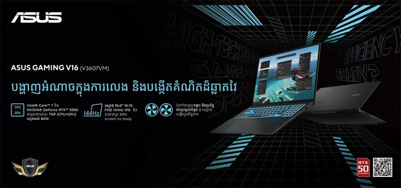 ASUS Gaming V16 មកដល់កម្ពុជាហើយ! លេងហ្គេមកាន់តែសប្បាយ និងការច្នៃប្រឌិតកាន់តែអស្ចារ្យ!
