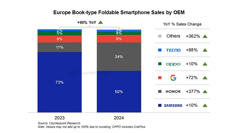 Honor ដណ្តើមចំណែកទីផ្សារស្មាតហ្វូនអេក្រង់បត់ពី Samsung នៅតំបន់អ៊ឺរ៉ុប