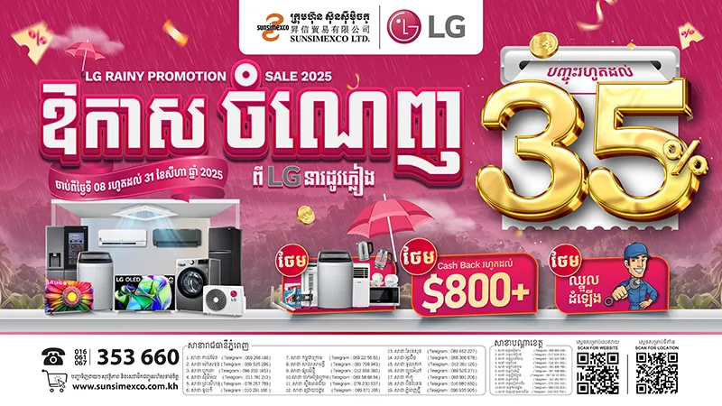 ឱកាសចំណេញពីម៉ាក LG នារដូវភ្លៀងនេះ បញ្ចុះតម្លៃរហូតដល់ 800 ដុល្លារពីក្រុមហ៊ុនស៊ុនស៊ីម៉ិចកូ