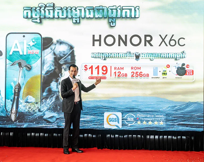 ស្មាតហ្វូន AI ស៊េរីថ្មី HONOR X6c អាវក្រោះការពារទឹក ការពារធ្លាក់ តាន់ 360 ដឺក្រេ មានមុខងារAI សម្បូរបែប ថែមទាំងអាចបកប្រែគ្រប់ភាសា ដាក់លក់ក្នុងតម្លៃត្រឹមតែ 119$
