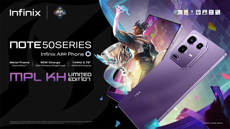 Infinix NOTE 50 Pro ស្មាតហ្វូនរចនាកម្រិត Flagship ស៊ុមលោហៈ ArmorAlloy™ សាកថ្មលឿន 90W និង 30W Wireless Charging