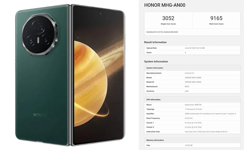 Honor Magic V5 ប្រើប្រាស់ឈីប Snapdragon 8 Elite និងប្រព័ន្ធប្រតិបត្តិការ Android 15
