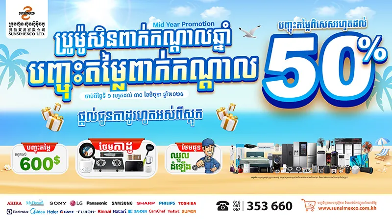 ប្រូម៉ូសិនពាក់កណ្ដាលឆ្នាំ បញ្ចុះតម្លៃពាក់កណ្ដាល បញ្ចុះតម្លៃពិសេសរហូតដល់ ៥០%