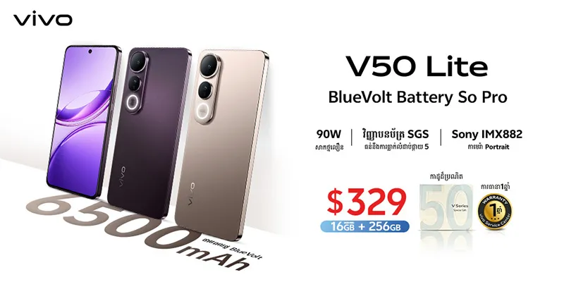 vivo V50 Lite បើកដំណើរការលក់ជាផ្លូវការជាមួយនឹងថ្មដ៏មានឥទ្ធិពលខ្ពស់នៅក្នុងការរចនាដ៏ស្តើង