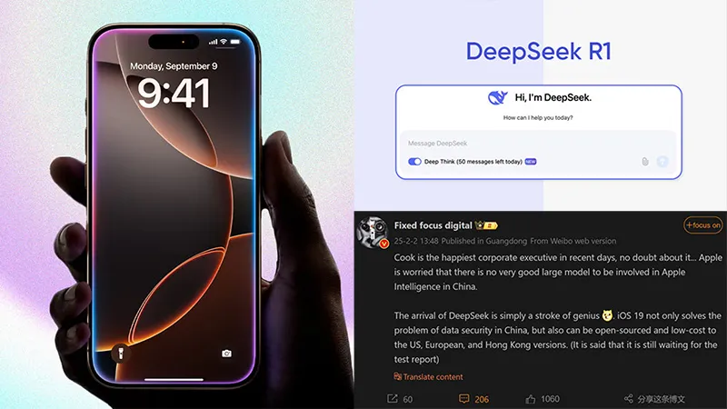 ពាក្យចចាមអារ៉ាមថ្មីនិយាយថា iPhones ជំនាន់ថ្មី អាចនឹងប្រើប្រាស់ DeepSeek R1 AI របស់ Huawei