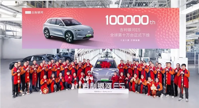 រថយន្ត Geely Galaxy E5 លេខរៀងទី 100,000th បានរំកិលចេញពីខ្សែសង្វាក់ផលិតកម្មនៅប្រទេសចិន