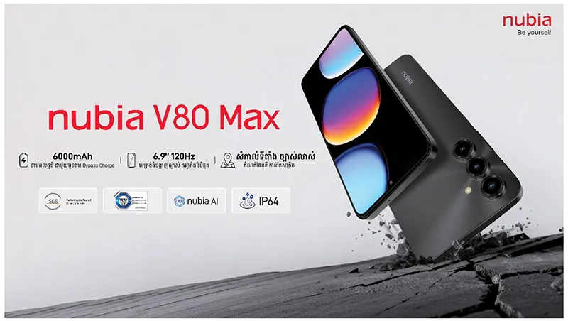 ក្រុមហ៊ុន nubia ប្រកាសចេញលក់ស្មាតហ្វូនជំនាន់ថ្មី V80 Max ជាផ្លូវការ៖ ជាស្មាតហ្វូនអេក្រង់ធំ 6.9 អ៊ីញ ថ្មធំ 6000mAh និងបំពាក់បច្ចេកវិទ្យា AI ឆ្លាតវៃ