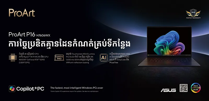 ASUS ប្រកាសកុំព្យូទ័រ AI លំដាប់សម្រាប់អ្នកបង្កើតមាតិកាបំពាក់អេក្រង់ Lumina Pro OLED ថ្មី និង កាតក្រាហ្វិក NVIDIA GeForce RTX 5090