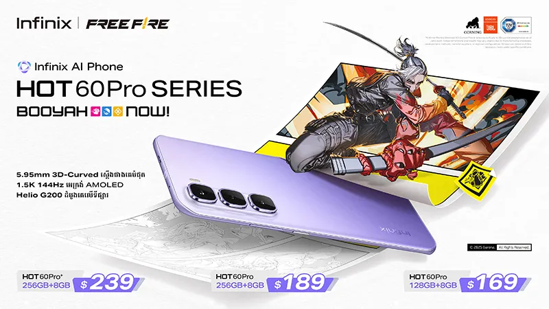 Infinix HOT 60PRO Series: ស្មាតហ្វូនស្តើងបំផុត5.95mm កម្លាំងខ្លាំង Helio G200 តម្លៃចាប់ពី 169 ដុល្លារ