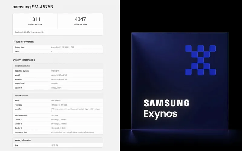Samsung Galaxy A57 បង្ហាញខ្លួននៅលើបញ្ជីតេស្តសមត្ថភាពជាមួយនិងបន្ទះឈីប Exynos 1680