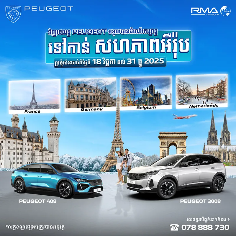 ទិញរថយន្ដ Peugeot នៅថ្ងៃនេះ នឹងទទួលបានដំណើរកម្សាន្ដទៅសហភាពអឺរ៉ុប!!!
